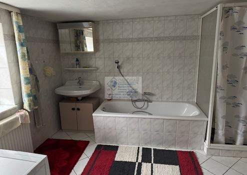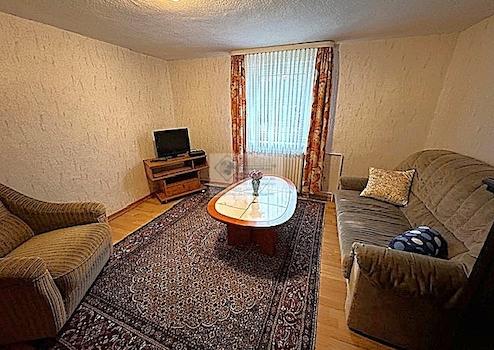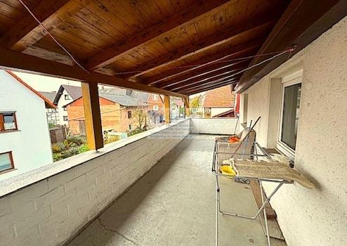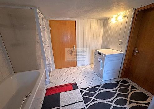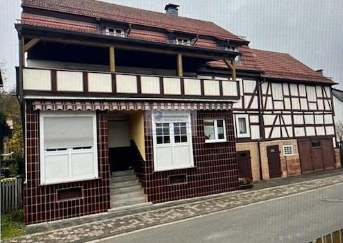 Dieses Fachwerkhaus mit Nebengebäude wurde ca. 1850 erbaut und durch zwei Anbauten ca.1920 und 1958 erweitert. Auf ca. 160 m² Wohnfläche befinden sich im Erdgeschoss, eine Küche, ein Esszimmer, ein Büro, ein Wohnzimmer, ein WC und ein ehemaliger Laden. Im Obergeschoss findet man drei Zimmer, ein Bad, ein WC, einen Abstellraum sowie einen großen überdachten Balkon vor.