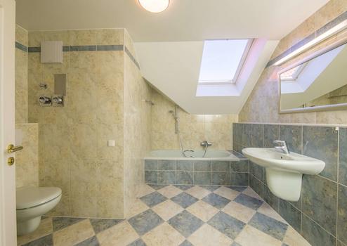 • hochwertiges Bad mit Wanne, Waschbecken und Toilette