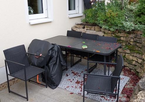Unsere 110 qm helle hochwertige sep. Mietwohnung im EG eines Niedrigenergiehauses m. Sonderausstattung wird Anfang Februar 2026 frei. Die Whg. liegt am Wäldchen + Weinbergen sehr ruhig.