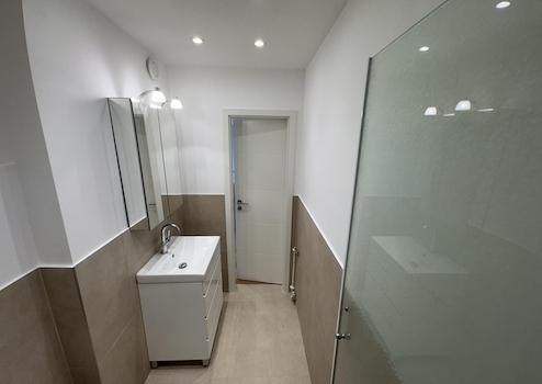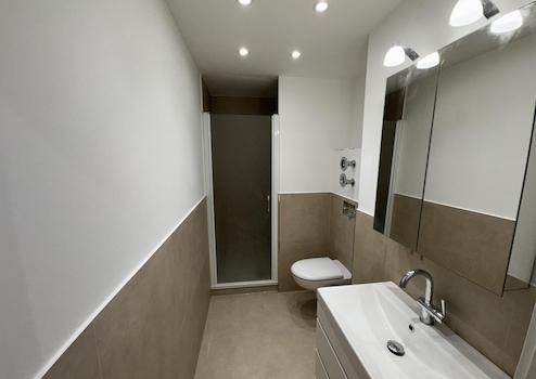 • moderne Einbauspots im Badezimmer und im Flur
