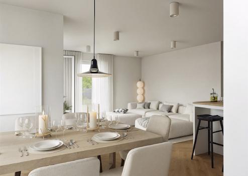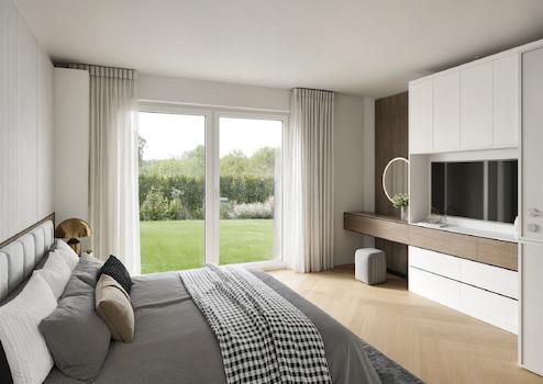 In jedem der beiden Häuser befinden sich pro Etage zwei Wohnungen. Das ermöglicht es den Bewohnern, ihre Privatsphäre zu wahren und gleichzeitig das Zusammenleben elegant zu genießen.