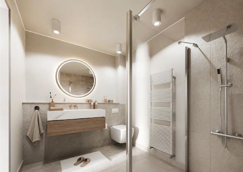 Kastanienhof Goethestraße - Eine neue Adresse in Neheims Mitte: Auf einem großzügigen Grundstück von 1.279 m² sind zwei Baukörper hintereinander angeordnet. Die Verbindung bildet ein lichtdurchflutetes Treppenhaus mit seitlichem Haupteingang. Ein Aufzug erschließt die Geschosse von der Tiefgarage bis zu den Penthouse-Bereichen auf komfortable Weise.
