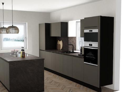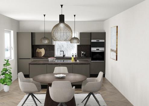 Sie erhalten hochwertige deutsche Markengeräte, einen modernen freistehenden Kochblock sowie einen innovativen Dunstabzug im Ceranfeld der Marke Schott integriert.