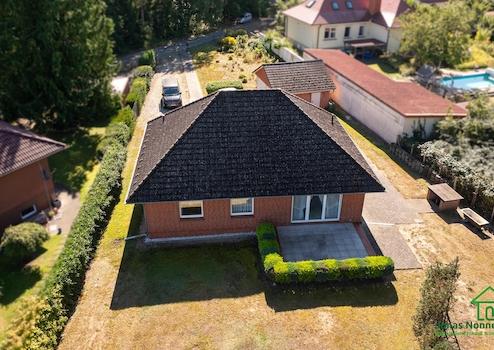 Die Beheizung erfolgt über eine moderne Gasheizung der Marke Vaillant aus dem Jahr 2021, die auch die Warmwasserversorgung übernimmt. Kunststofffenster sowie ein Walmdach mit Betondachsteinen unterstreichen die langlebige Bauweise. Auf dem weitläufigen Grundstück von insgesamt 4.839 m² befinden sich eine Doppelgarage sowie weitere Stellplätze, die ausreichend Platz für Fahrzeuge und Gäste bieten.