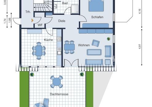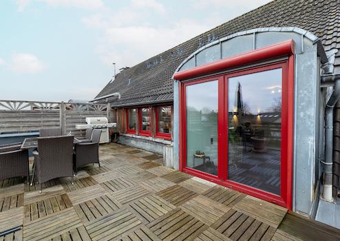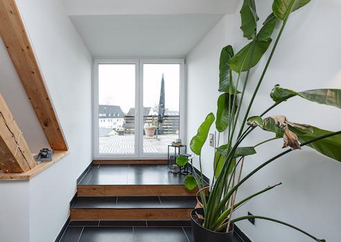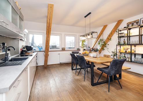Die beeindruckende Dachterrasse mit Süd-/West-Ausrichtung präsentiert sich als außergewöhnlicher Außenbereich mit Lounge-Charakter und hebt den Wohnkomfort auf ein neues Niveau.