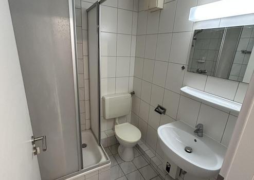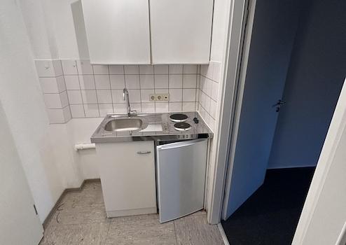 Duschbad, Einbauküche, Teppichboden, Fliesen