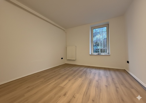 Die beiden Zimmer sind gut geschnitten und lassen sich flexibel als Schlafzimmer, WG-Zimmer oder Arbeitszimmer nutzen. Große Fenster sorgen trotz Souterrain-Lage für eine angenehme Helligkeit und ein freundliches Wohngefühl. Der durchgängig verlegte Vinylboden in Holzoptik sowie die frisch gestrichenen Wände verleihen der Wohnung eine ruhige, moderne Atmosphäre.