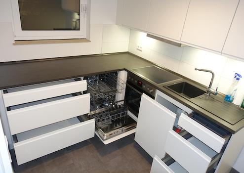 Terrasse, Garten, Duschbad, Einbauküche, Laminat, Fliesen