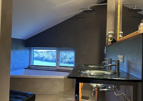 Wellness: Exklusive Sanitärausstattung (u.a. Philippe Starck) und luxuriöser Master-Bereich mit En-Suite-Bad im OG.