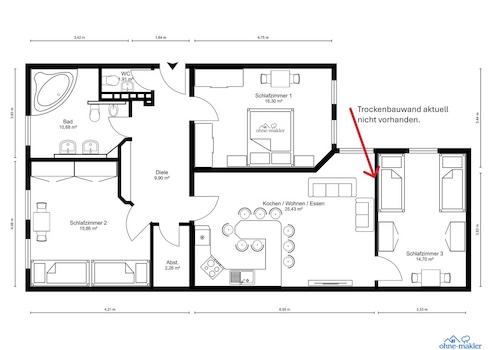 ohne-makler (OM) ist weder Anbieter noch Vermittler der Immobilie. OM betreibt eine Plattform für Immobilieneigentümer, die unter anderem die gleichzeitige Veröffentlichung einzelner Inserate auf mehreren Immobilienportalen ermöglicht. Die Inhalte dieser Inserate werden ausschließlich von Dritten verantwortet. Für die Richtigkeit, Vollständigkeit oder Rechtmäßigkeit der Angaben übernimmt OM keine Haftung. Hinweise auf mögliche Rechtsverstöße können jederzeit gemeldet werden und werden nach Prüfung umgehend bearbeitet.