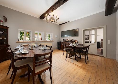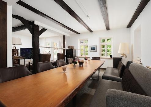 Im Obergeschoss warten zwei große Apartments sowie eine Drei-Zimmer-Wohnung, die flexibel genutzt oder vermietet werden können – ideal für Feriengäste, Seminarteilnehmer oder für Angehörige.