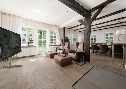Das charmante Reetdachhaus bietet insgesamt rund 500 m² Wohnfläche und aktuell 12,5 Zimmer.