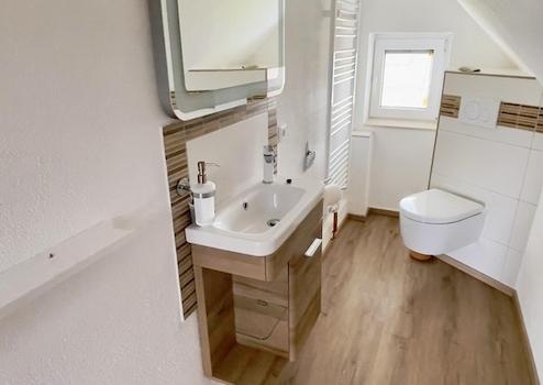 Das Bad im Wohnhaus ist gemütlich klein aber zweckmäßig. Das Haus wurde innen zuletzt 2021 saniert.