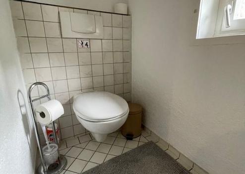 Bad mit Dusche und Toilette. Zudem ist eine Waschmaschine im Bad angeschlossen.