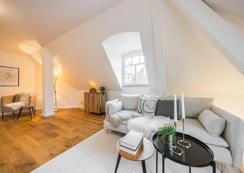 Die Wohnung befindet sich im Dachgeschoss und ist bequem über den vorhandenen Fahrstuhl erreichbar. Insgesamt verbindet sie stilvollen Altbaucharakter mit zeitgemäßem Wohnkomfort und spricht sowohl anspruchsvolle Eigennutzer als auch Kapitalanleger an.