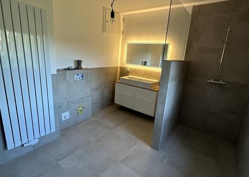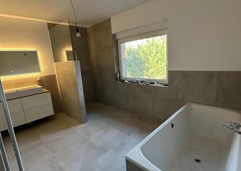 Hauptbad mit Fußbodenheizung, ebenerdiger Dusche & Badewanne