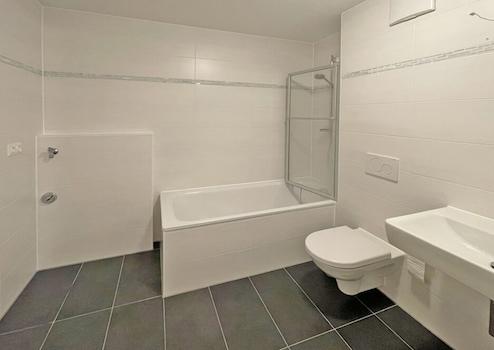 - Badezimmer: Badewanne, WC, Handtuchwärmer und Waschmaschinenanschluss