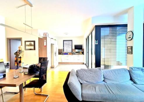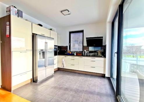 • Küche mit moderner, komplett ausgestatteter EBK (u.A. mit Eiswürfelbereiter, Kühl-Gefrierkombi, Dunstabzug, Induktionsherd mit Umluft-Backofen, etc.)