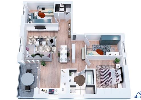 Die Wohnung ist lichtdurchflutet hell und mit teilweise bodentiefen Fenstern ausgestattet. Die Wohnung liegt in Bestlage am Eingang zum neuen Wohngebiet Franklin.