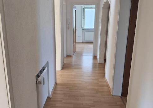 4 1/2-Zimmer-Wohnung, aufgeteilt in ein großes Wohn-/ Esszimmer mit Zugang zum Balkon, eine abgeschlossene Küche, Flur, Elternschlafzimmer, Kinderzimmer 1, Kinderzimmer 2, Tageslichtbad, Gäste-WC, großer, weitestgehend überdachter Balkon. Wohnfläche ca. 96 m².
