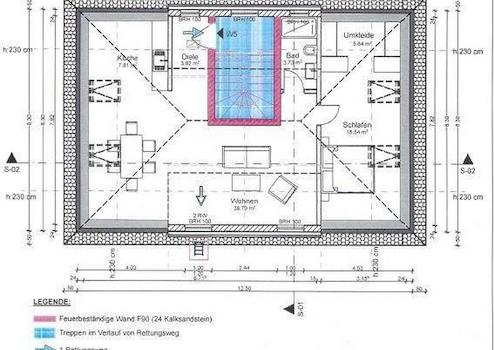 - WHG5 Dachgeschosswohnung 2 Zimmer mit Einbauküchenvorrichtung und Bad ca. 67,5m²