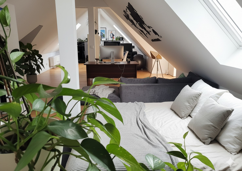 - Dachstudio als offener Raum als großer Elternbereich, für Homeoffice oder kreative Hobbies