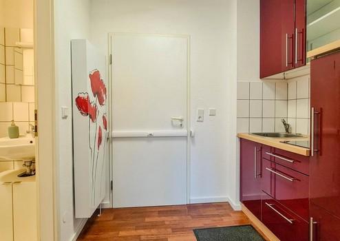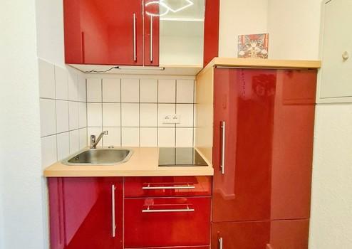 - Einbauküche (mit Kühlschrank, zwei Elektroherdplatten und Küchenschränken)