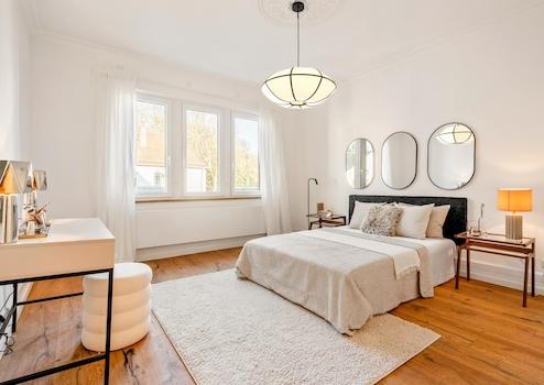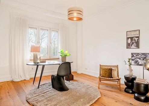 Die Wohnung befindet sich in einer repräsentativen Altbauvilla aus dem Jahr 1907 mit lediglich fünf Wohneinheiten. Das Gebäude wurde kürzlich umfassend kernsaniert und energetisch auf den neuesten Stand gebracht. Modernste Technik wie Luft-Wasser-Wärmepumpe, Photovoltaikanlage und neues Dach treffen hier auf den zeitlosen Charakter eines klassischen Altbaus.