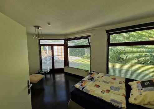 Die weiteren Zimmer zeichnen sich durch großzügige Grundrisse, bodentiefe Fenster sowie zusätzliche Oberlichter aus und vermitteln eine helle, freundliche Wohnatmosphäre. Zwei dieser Räume verfügen jeweils über einen eigenen Zugang zu separaten Terrassen und ermöglichen dadurch unabhängige Rückzugsbereiche innerhalb des Anwesens.