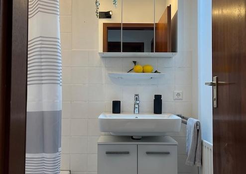 - Modernisiertes Badezimmer, neue Bodenbeläge