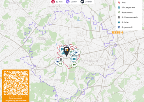Besonders attraktiv ist die verkehrsgünstige Lage. Die Autobahn A40, eine der wichtigsten Ost-West-Verbindungen im Ruhrgebiet, ist in wenigen Minuten erreichbar und ermöglicht schnelle Fahrten in die umliegenden Städte wie Duisburg, Mülheim, Bochum oder Dortmund. Gleichzeitig ist die Anbindung an den öffentlichen Nahverkehr sehr gut: Bus- und Straßenbahnlinien verkehren im näheren Umfeld und verbinden Frohnhausen zuverlässig mit der Essener Innenstadt sowie anderen Stadtteilen.