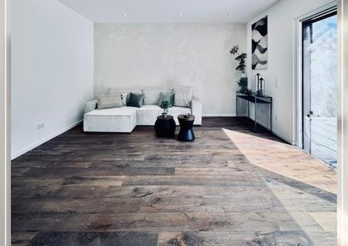 ✔ Böden: edles Echtholzparkett in allen Wohnräumen, exklusive Feinsteinzeugfliesen in Bad & Gäste-WC