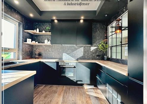 -edle Materialien wie Naturstein, Industrial-Glaselemente & Designer-Küche
