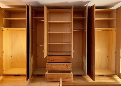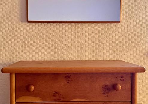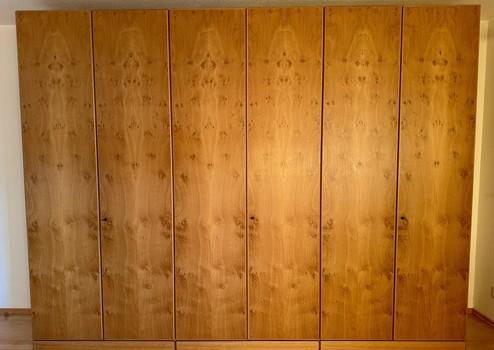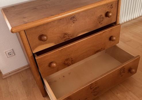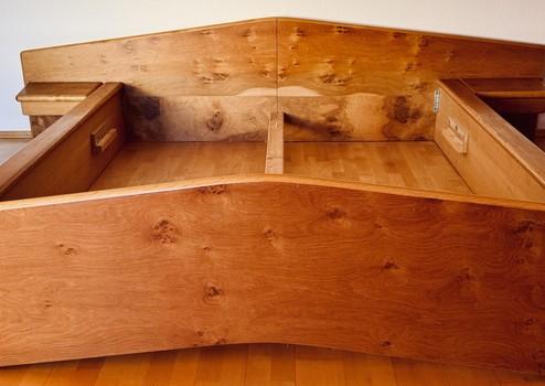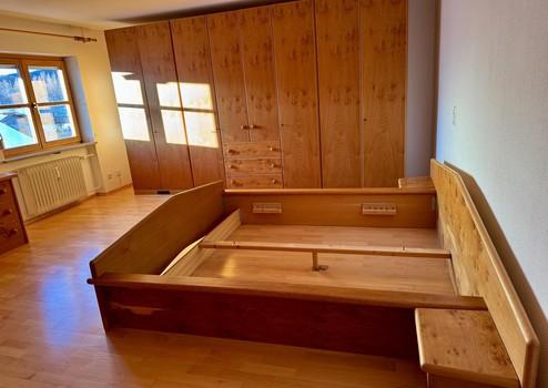 Das Schlafzimmer aus Wildeiche mit Doppelbett, Kommode mit Spiegel, 2 große Schränke könnten gegen eine Ablöse übernommen werden.