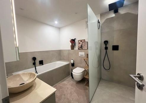 Neben der hochwertigen Einbauküche verfügt die Wohnung über eine Klimaanlage, die ganzjährig für ein angenehmes Raumklima sorgt. Ein eigener Kellerraum, ein gemeinschaftlicher Waschraum sowie eine Garage, die im Kaufpreis enthalten ist, ergänzen das Angebot ideal.