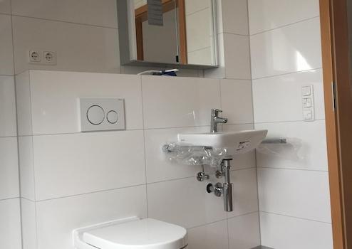 Sehr helle 2-Zimmer-Wohnung im DG eines Mehrfamilienhauses gelegen, barrierefrei, großzügige Raumaufteilung, gehobene Ausstattung, moderne Einbauküche, großes Wohnzimmer, Bad raumhoch gefliest, großer Duschbereich, Waschbecken und Spiegelschrank mit Beleuchtung, hochwertige Ausstattung, Fliesenböden in allen Räumen, Fußbodenheizung, kontrollierte dezentrale Lüftungsanlage (Be- und Entlüftung) mit Wärmerückgewinnung, Bad mit Fenster, elektrische Rollos, großer Balkon mit Fliesenbelag und Verglasung, Kellerabteil, Wasch- und Trockenraum im Keller.