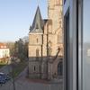 Auf der anderen Seite der Wohnung, am Kirchplatz, genießen Sie am Esstisch der großen Wohnküche, den Ausblick auf die Nicolaikirche.