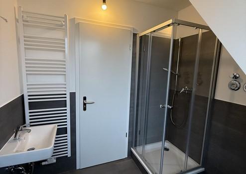 Das moderne Badezimmer ist hochwertig ausgestattet und verfügt über eine komfortable Stehdusche. Abgerundet wird das Angebot durch einen großzügigen Eingangsbereich, der ausreichend Platz für Garderobe und Stauraum bietet.