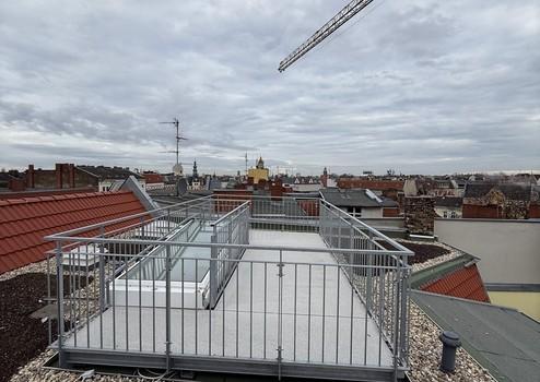 Ein besonderes Highlight ist die über eine großzügige Treppe erreichbare Dachterrasse mit 360-Grad-Panoramablick und traumhaftem Ausblick über die Stadt.