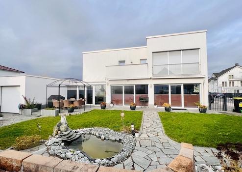 Das repräsentative Architektenhaus im Bauhaustil wurde als Energieeffizienzhaus 2013 in Massivbauweise errichtet. Die extravagante und mit Liebe zum Detail ausgestattete Inneneinrichtung bietet Ihnen einen Wohnkomfort im Luxussegment.