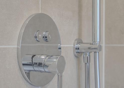 - Walk-In Dusche mit Glastrennwand und Regenschauer-Duschkopf