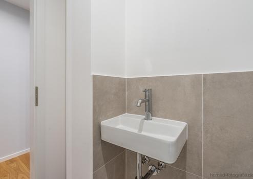 - Feinsteinzeug und hochwertige Badkeramik in Bad und Gäste WC
