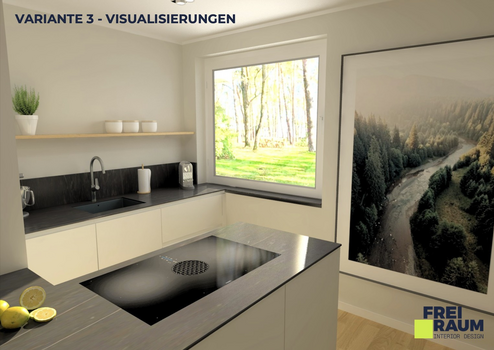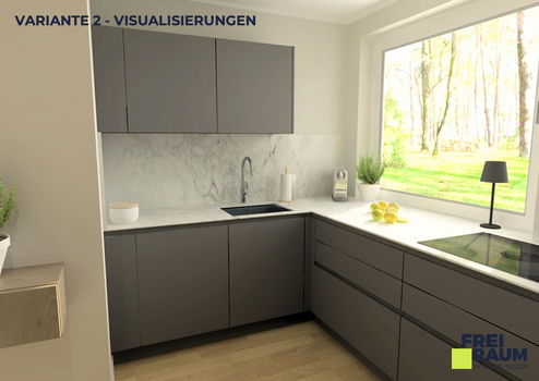 - Küche: ehemals geschlossener Küchenbereich wurde geöffnet und ermöglicht nun nach Wunsch eine moderne Küchengestaltung (siehe Planvarianten)