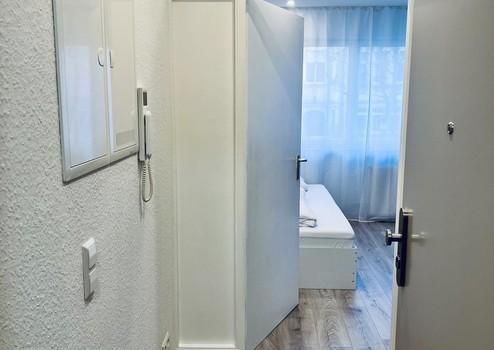 Die vollmöblierte Wohnung verfügt über ein Zimmer mit Küchennische sowie einem separaten Bad und einem kleinen Flur.