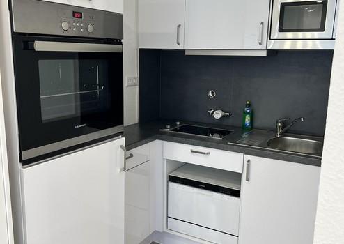 Die vorhandene Einbauküche ist vollständig mit Elektrogeräten ausgestattet und hat sogar eine kleine Spülmaschine.