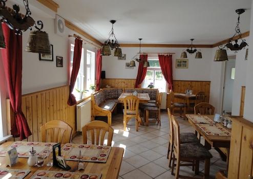 Das Restaurant orientiert sich ebenfalls in seiner Einrichtung am historischem (denkmalgeschützten) Gesamtbild des Hauses und lässt sich auch am treffendsten mit den Worten "rustikal & gemütlich" beschreiben (siehe Bilder).