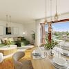Weiter geht es in das geräumige Wohnzimmer, das ausreichend Platz für einen gemütlichen Wohnbereich bietet. Die großen Fenster und der Zugang zum Balkon sorgen für eine helle und freundliche Atmosphäre. Der Balkon selbst lädt dazu ein, entspannte Stunden im Freien zu verbringen und bietet einen schönen Ausblick auf die Umgebung.