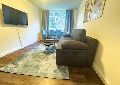 Diese hochwertige 2-Zimmer-Wohnung im 1. Obergeschoss eines gepflegten Mehrfamilienhauses in Hannover bietet eine ideale Wohnlösung für Singles oder Paare, die komfortabel, möbliert und langfristig wohnen möchten. Die Wohnung überzeugt durch eine durchdachte Raumaufteilung mit großzügigem Wohnbereich und separatem Schlafzimmer.