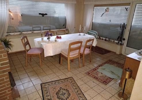 Beheizt wird der Gebäudekomplex durch die im Altbau befindliche Öl-Heizung. Nach Auskunft des Schornsteinfegers sind verschiedene Mängel an der Heizungsanlage bekannt gewesen, in welchem Umfang diese vor dem Tod der vormaligen Besitzerin noch behoben wurden und ob die Anlage betriebsbereit ist, ist unklar. Da es sich um einen Standard-Heizkessel handelt, der älter als 30 Jahre ist, verliert dieser nach aktueller Gesetzeslage zwei Jahre nach Eigentümerwechsel seine Betriebserlaubnis. Der offene Kamin in der eingeschossigen Wohnzimmererweiterung ist laut Schornsteinfeger noch zulässig.