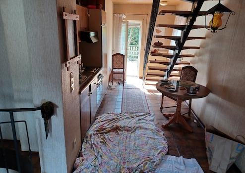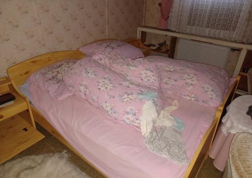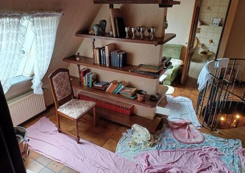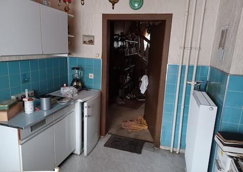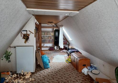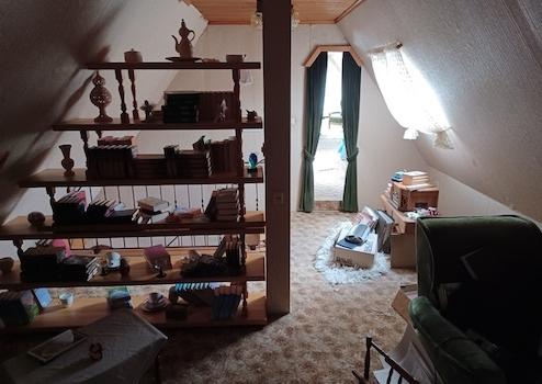 Das Objekt war bis Herbst 2023 bewohnt. Die ehemalige Eigentümerin ist im Bereich Kochen/Essen/Wohnen im DG der Wohnhauserweiterung verstorben (in den Bildern erkennbar an den Tüchern/Laken auf dem Fußboden).